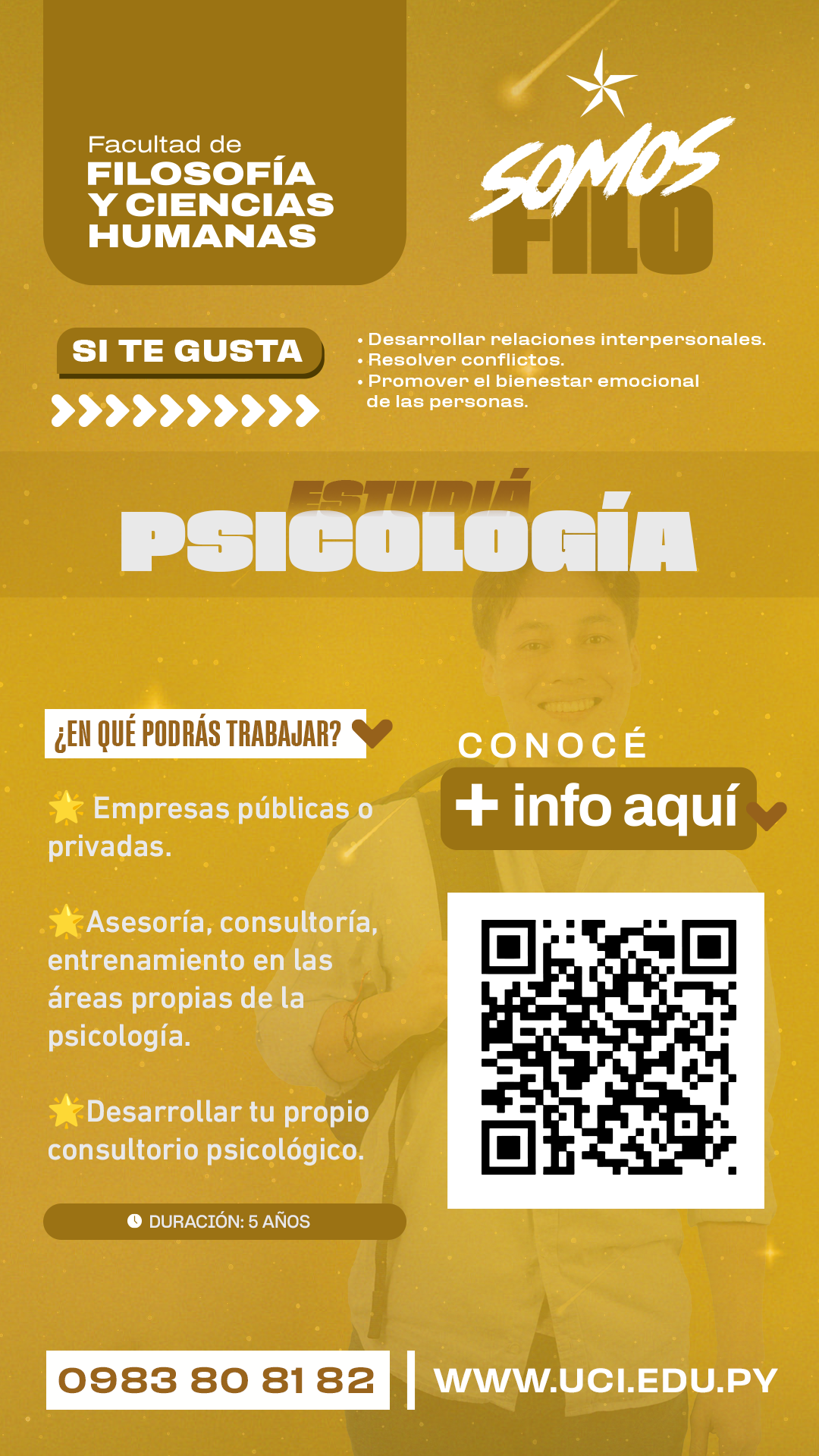 Promover la formación científica y el desarrollo de las capacidades técnicas generales necesarias para la resolución de los problemas psicológicos de relevancia individual y social, relacionados con los ámbitos de la salud, la intervención social, la educación, el trabajo y las organizaciones, teniendo en cuenta los avances de las ciencias del comportamiento y los valores cristianos.