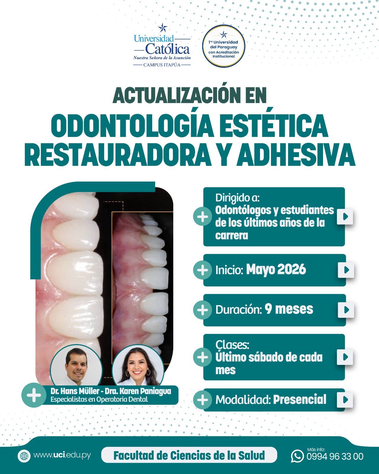 El curso de actualización en odontología estética restauradora y adhesiva surge como respuesta a la constante evolución de los materiales, técnicas y protocolos clínicos en el área de la odontología estética moderna. En un contexto donde los pacientes exigen resultados cada vez más naturales, funcionales y duraderos, se hace indispensable que el profesional odontólogo mantenga una formación continua que le permita integrar conceptos actuales de adhesión, biomimética y diseño estético con procedimientos mínimamente invasivos.
