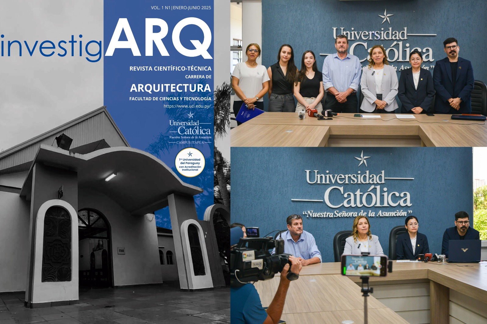 En una conferencia de prensa realizada este miércoles 26 de noviembre, la Universidad Católica “Nuestra Señora de la Asunción” – Campus Itapúa, a través de la Carrera de Arquitectura de la Facultad de Ciencia y Tecnología, presentó oficialmente, el primer número de su nueva revista científica técnico-académica OnvestigARQ, correspondiente al Vol. I, N.º 1 – Enero/Junio 2025, registrada bajo el ISSN 3105-9880.