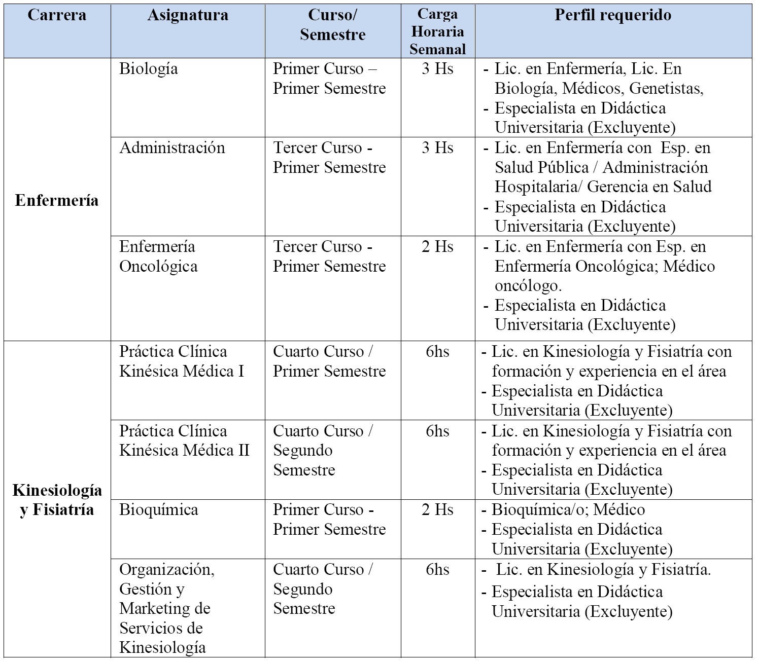 LLAMADO A CONCURSO DE CÁTEDRAS: Enfermería / Kinesiología y Fisiatría