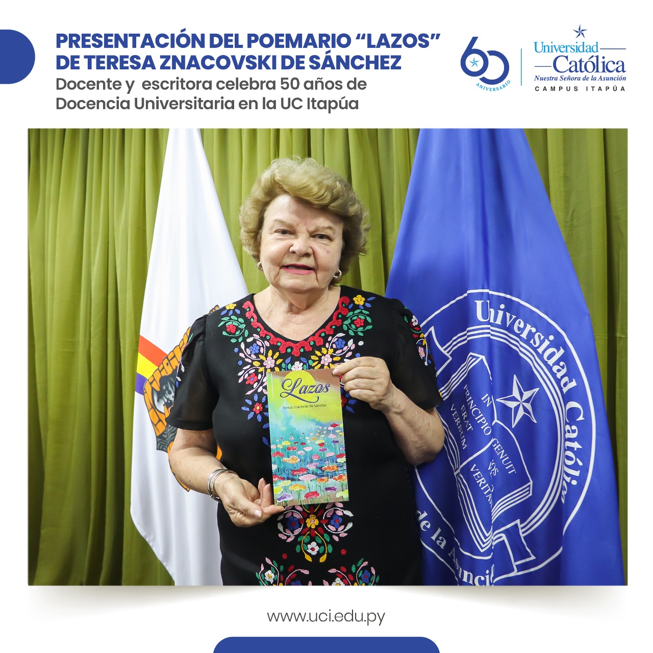 Se presentó en el Aula Magna de la Universidad Católica Campus Itapúa, el Poemario “Lazos” de la Prof. Teresa Znacovski de Sánchez, docente, escritora e investigadora, llevado a cabo en homenaje a sus 50 años de Docencia Universitaria en la UC Itapúa, el viernes 2 de diciembre.