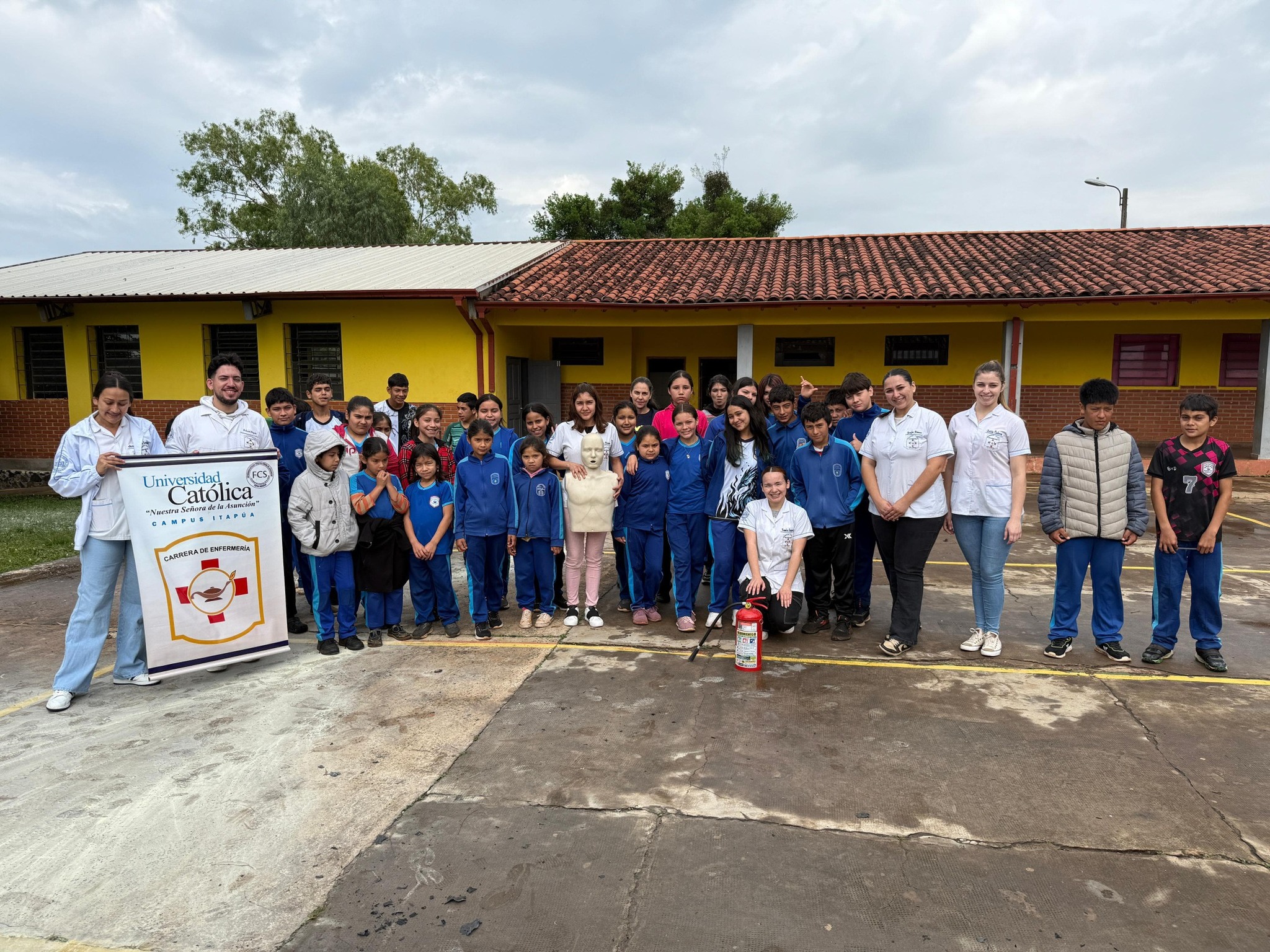 En el marco de las acciones de promoción de la salud y prevención de accidentes, estudiantes de la Carrera de Enfermería de la Universidad Católica “Nuestra Señora de la Asunción” Campus Itapúa (UCI) participaron activamente en una capacitación sobre primeros auxilios dirigida a alumnos de la Escuela Lucas Bruders, del barrio San Antonio Ypecurú, distrito de Encarnación.