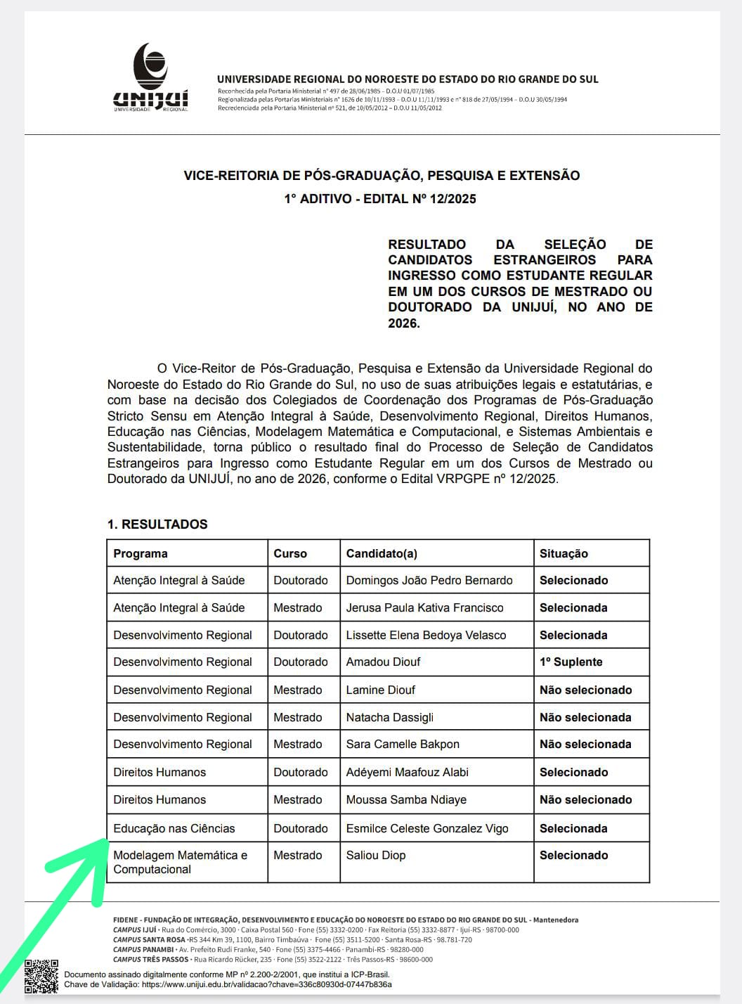 El anuncio fue realizado oficialmente por el Vicerrectorado de Posgrado, Investigación y Extensión de la UNIJUÍ, mediante la Nota Nº 12/2025, que comunicó los resultados del proceso de selección de candidatos extranjeros para los programas de Maestrías y Doctorados de dicha institución brasileña.